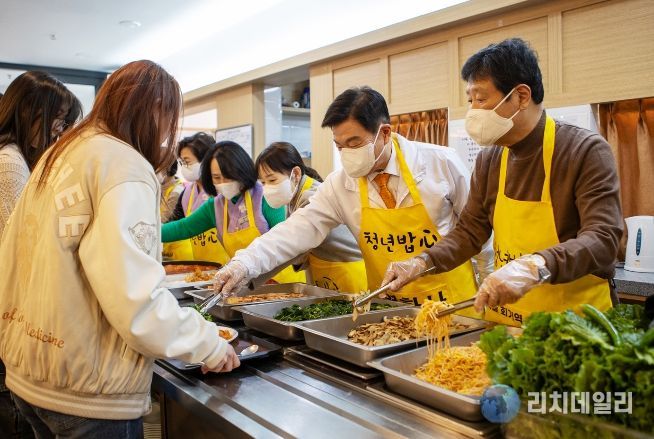 리치데일리 김상현 기자 | 서울 동대문구 경희대 정문 옆 연화사 공양간에 점심시간을 앞두고 대학생들이 하나둘 모여들었다. 수업을 마친 학생들이 줄을 서자 사찰 안은 금세 북적였다. 스님들과 자원봉사자들이 분주히 음식을 나르고, 공양간 앞에서는 학생들끼리 “오늘 메뉴가 뭐냐”며 웃음 섞인 대화를 주고받았다. 그 줄 앞에 이필형 동대문구청장도 섰다. 학생들에게 직접 음식을 건네며 “밥 잘 챙겨 먹고, 학업과 미래 준비도 힘내라”고 말을 건넸다. 이 구청장은 연화사 ‘청년밥心’ 현장에서 배식자로 참여해 대학생들을 격려했다.