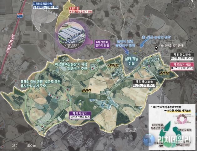 주요 사업 내용으로는 ▲폐축사 14동 ▲대성고등학교(2004년도 폐교) 13동 ▲폐건물 8동 등 총 4개소 35개동의 폐건축물 정비하게 된다. 타 사업 단계별 연계 투자를 통해 주민들을 위한 생활 서비스 공급 시설이나 정주 기능의 공간으로 재탄생할 전망이다.