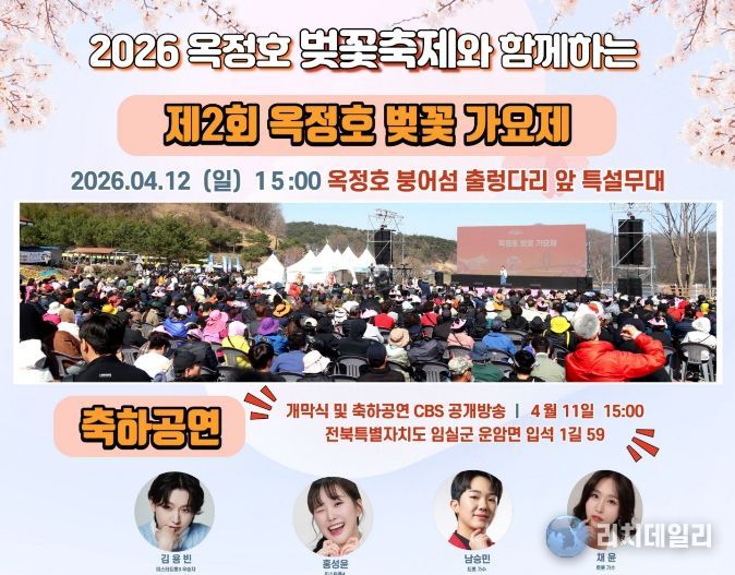 이번 가요제는 벚꽃이 만개한 옥정호 붕어섬에서 열리는 “2026 옥정호 벚꽃축제”의 대미를 장식하는 대표프로그램으로 축제의 열기를 최고조로 끌어올릴 예정이다.
