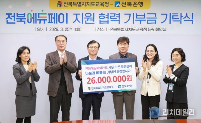 리치데일리 김상현 기자 | 전북에듀페이카드 운영사인 전북은행이 전북특별자치도교육청에 장학금 2,600만 원을 기부했다.
