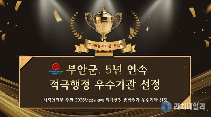리치데일리 김상현 기자 | 부안군은 행정안전부에서 주관한 2026년(2025년 실적) 지방정부 적극행정 종합평가에서 우수기관으로 선정돼 지난 2021년 하반기 성과 점검부터 5년 연속 우수기관 선정이라는 금자탑을 쌓았다고 밝혔다.