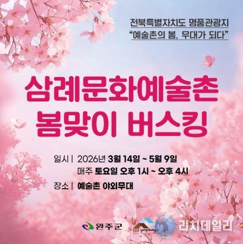 리치데일리 김상현 기자 | 완주군 삼례문화예술촌이 오는 5월 9일까지 매주 토요일마다 ‘2026년 명품관광지 봄맞이 버스킹’을 개최하며 관광객들에게 봄의 설렘을 선사한다.