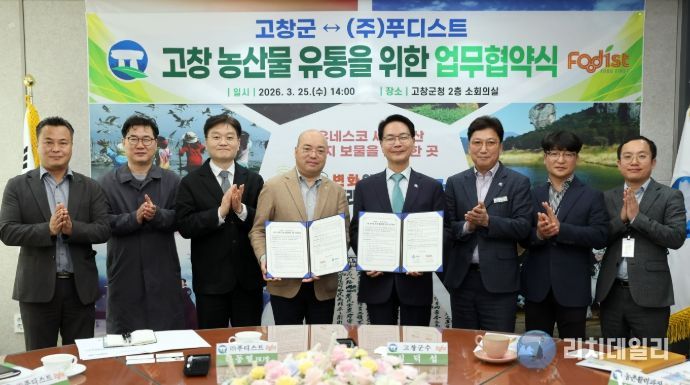 이날 협약식에는 고창군수와 하동열 ㈜푸디스트 상품BU장 등이 참석했다. 사조그룹 계열사인 ㈜푸디스트는 2025년 서해안고속도로 고인돌휴게소의 운영위탁자로 선정돼 최근 리뉴얼 과정을 마무리하면서 방문객들의 큰 호응을 얻고 있다.