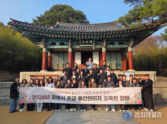 리치데일리 김상현 기자 | 2025년 이후 6급으로 승진한 강릉시 초급중간관리자 58명이 ‘역량강화 워크숍’의 일환으로 3월 25일 오죽헌 문성사를 방문해 참배했다.