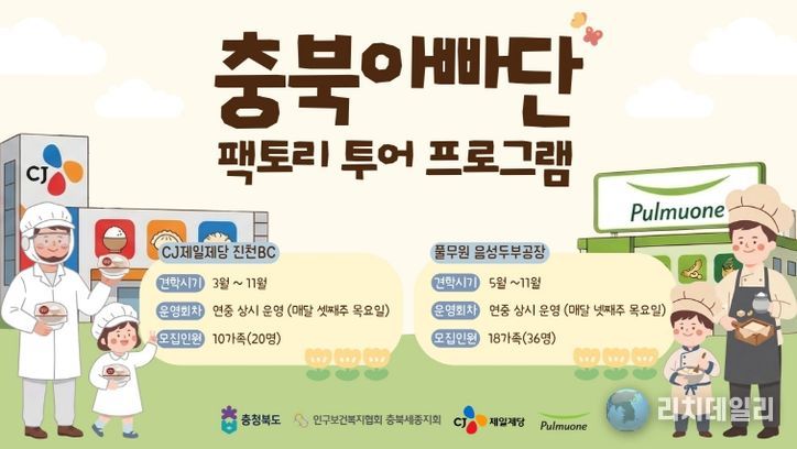 리치데일리 김상현 기자 | 충북도와 사업 수행기관인 인구보건복지협회 충북세종지회는 아빠와 자녀가 함께하는 체험형 프로그램을 통해 가족 간 유대감을 높이고 지역 산업에 대한 이해를 돕기 위해 ‘충북 아빠단 팩토리 투어 프로그램’을 운영한다.