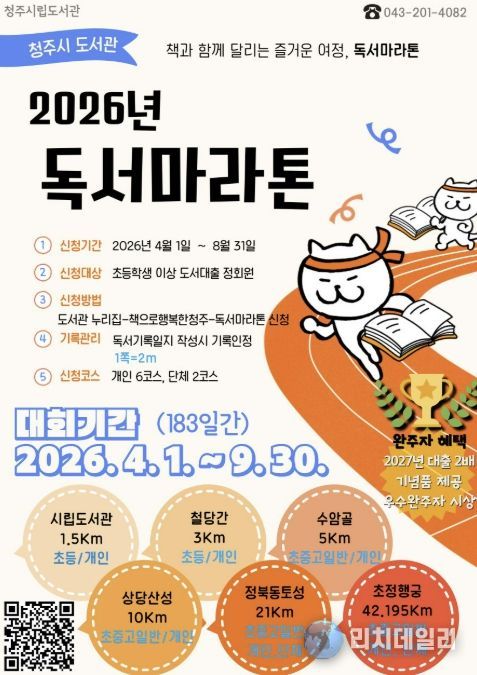 리치데일리 김상현 기자 | 청주시립도서관은 시민들의 독서 습관 형성과 책 읽는 문화 확산을 위해 ‘2026 독서마라톤’을 운영한다고 26일 밝혔다.