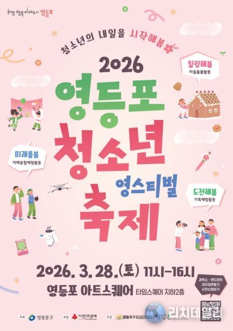 리치데일리 김상현 기자 | 영등포구가 오는 3월 28일, 새 학기를 맞은 청소년들의 희망찬 출발을 응원하기 위해 영등포 아트스퀘어와 타임스퀘어 광장에서 청소년 축제 ‘영스티벌’을 개최한다고 밝혔다.