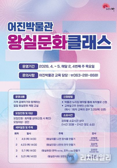 리치데일리 김상현 기자 | 전주시 어진박물관은 오는 4월부터 대표프로그램인 ‘왕실문화클래스’를 운영한다고 26일 밝혔다.