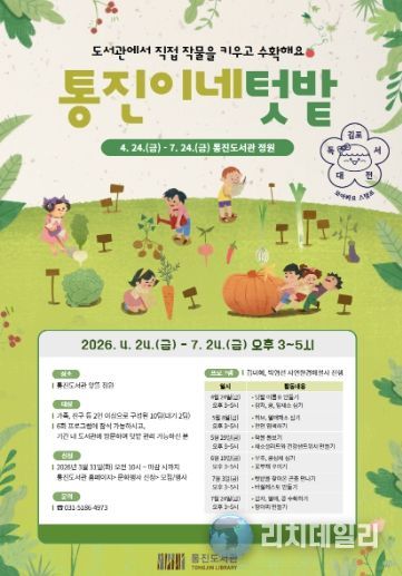 리치데일리 김상현 기자 | 김포시 통진도서관은 도서관에서 직접 작물을 키우고 수확하며 생태 감수성을 키우는 체험형 프로그램 ‘통진이네 텃밭’을 오는 4월 24일부터 7월 24일까지 운영한다.