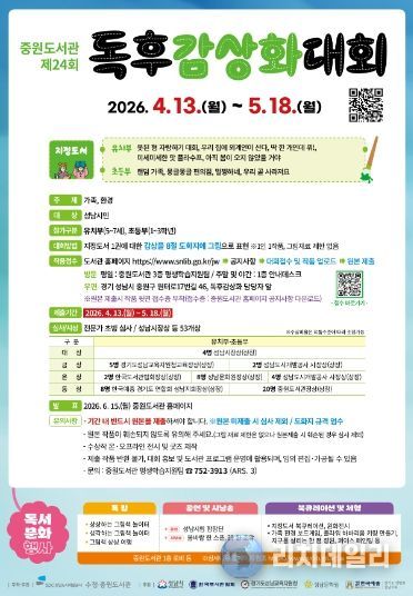 리치데일리 김상현 기자 | 성남도시개발공사 중원도서관은 ‘2026년 도서관의 날·도서관주간’을 맞아 오는 4월 13일부터 5월 18일까지 ‘제24회 독후감상화대회’를 개최한다고 26일 밝혔다.