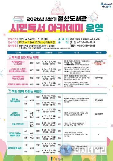 리치데일리 김상현 기자 | 광명시 철산도서관은 오는 4월 1일부터 ‘2026년 상반기 시민독서 아카데미’ 수강생을 모집한다.