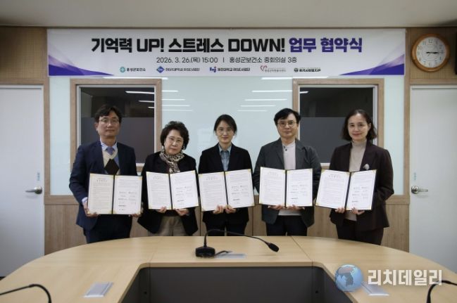 리치데일리 김상현 기자 | 홍성군은 지난 26일 청운대학교 RISE사업단, 혜전대학교 RISE사업단, 홍성사회복지관, 홍성군자원봉사센터와 함께 ‘기억력 UP! 스트레스 DOWN!’ 사업 추진을 위한 업무협약을 체결했다고 밝혔다.