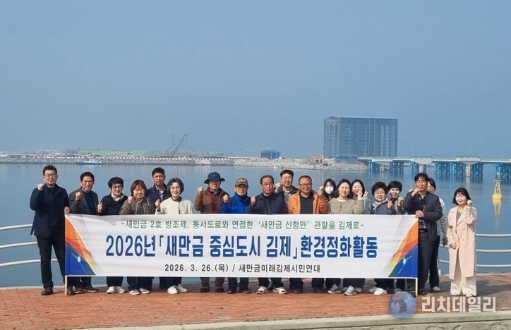 지난 26일 시민연대 위원들과 시 새만금경제국 직원 60여 명은 새만금 2호 방조제에 있는 바람쉼터 일원에 모여‘2026년도 제1회 김제 새만금 환경 정화 활동’을 실시했다.