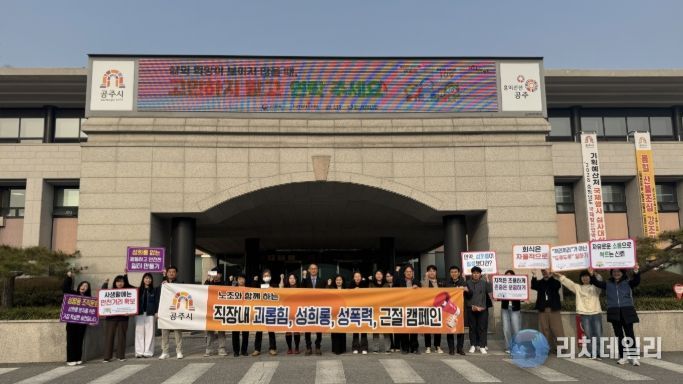 리치데일리 김상현 기자 | 공주시는 27일 시청 본관 로비에서 공주시청 공무원노동조합과 공무직노동조합과 함께 ‘2026년 직장 내 폭력 예방 캠페인’을 실시했다.