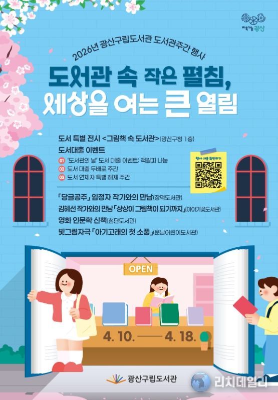 리치데일리 김상현 기자 | 광주 광산구가 도서관의 날(4월 12일)과 도서관주간(4월 12일∼18일)을 맞아 ‘도서관 속 작은 펼침, 세상을 여는 큰 열림’을 주제로 다양한 독서 문화 행사를 운영한다.