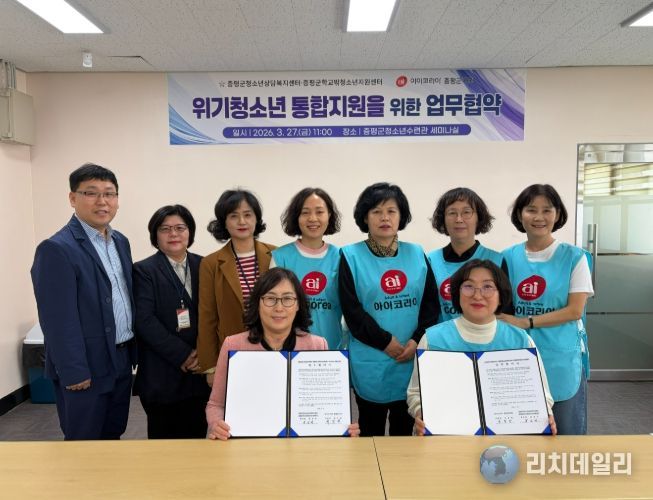 리치데일리 김상현 기자 | 증평군학교밖청소년지원센터는 27일 증평군청소년수련관 세미나실에서 아이코리아 증평군지회와 위기청소년 지원을 위한 업무협약을 체결했다.