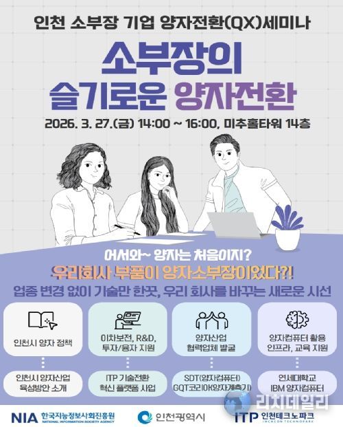 리치데일리 김상현 기자 | 인천광역시는 3월 27일 송도 미추홀타워에서 지역 소재·부품·장비(소부장) 기업을 대상으로 '양자전환(QX) 세미나'를 열고, 양자기술 기반 산업 적용과 기업 간 협력 네트워크 구축 방안을 모색했다.