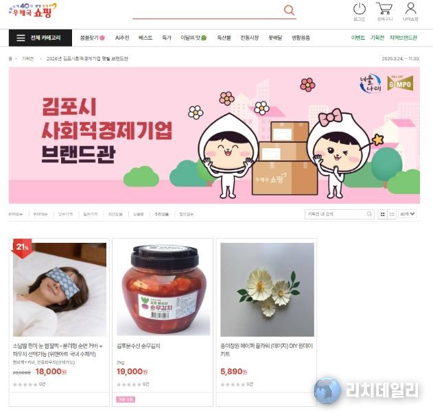리치데일리 김상현 기자 | 김포시는 한국우편사업진흥원 우체국쇼핑 지역브랜드관에 ‘김포 사회적경제관’을 개설하고 관내 사회적경제기업의 온라인 판로 확대에 나섰다.