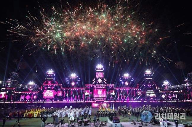 1963년 시작된 진해군항제는 올해로 64회를 맞은 대한민국 대표 봄꽃 축제로 성장해왔다. 개막식은 홍보영상 상영과 식전공연을 시작으로, 육·해·공군 등 12개 팀 기수단 입장, 개막선언, 군악대 합동 연주, 개막 불꽃쇼 순으로 진행됐다.