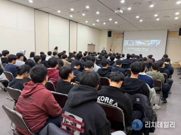 이승열 교수는 “태백에서 꿈꾸고 세계로 나아가자!”를 주제로 국내·외 항공산업의 현황과 주요 직무를 소개하고, 항공 분야 진출을 위한 진로 설계 방향과 준비 과정을 설명했다.