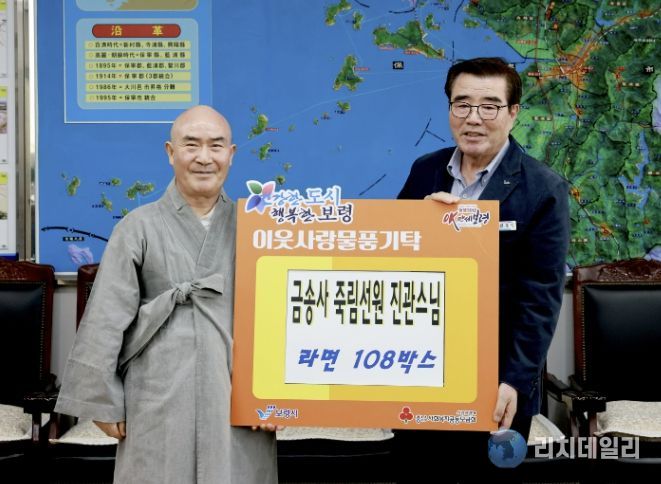 리치데일리 김상현 기자 | 보령시는 27일 시장실에서 김동일 보령시장과 삽시도 금송사 죽림선원 진관스님 등 관계자가 참석한 가운데 이웃사랑 후원물품 전달식을 가졌다고 밝혔다.
