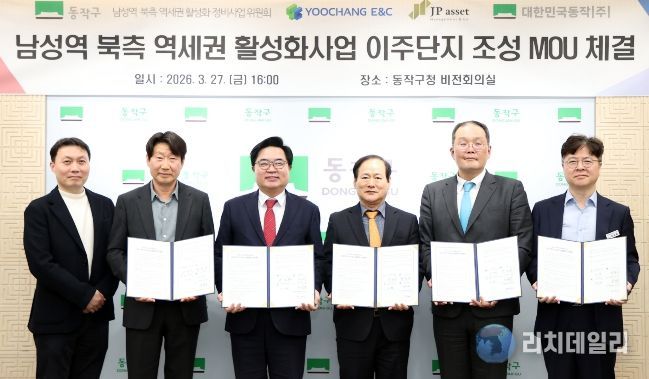 구는 지난 27일 구청 비전회의실에서 ▲동작주식회사 ▲JP에셋자산운용㈜ ▲㈜유창E&C ▲남성역 북측 역세권 활성화 사업 정비사업위원회와 ‘이주주택 조성 업무협약’을 체결하고 이같이 밝혔다.