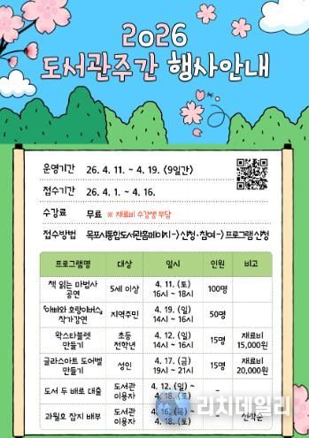 시 관계자는 “도서관의 날과 도서관 주간을 맞아 마련한 다양한 프로그램을 통해 시민들이 즐겁고 의미 있는 시간을 보내길 바란다”고 말했다.