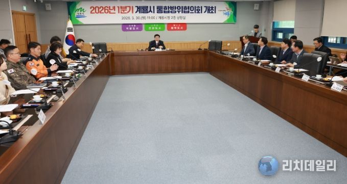 리치데일리 김상현 기자 | 계룡시는 30일 시청 상황실에서 지자체, 군, 경찰, 소방 등 주요 기관·단체장 17명이 참석한 가운데 2026년 1분기 통합방위협의회 정기회의를 개최했다.