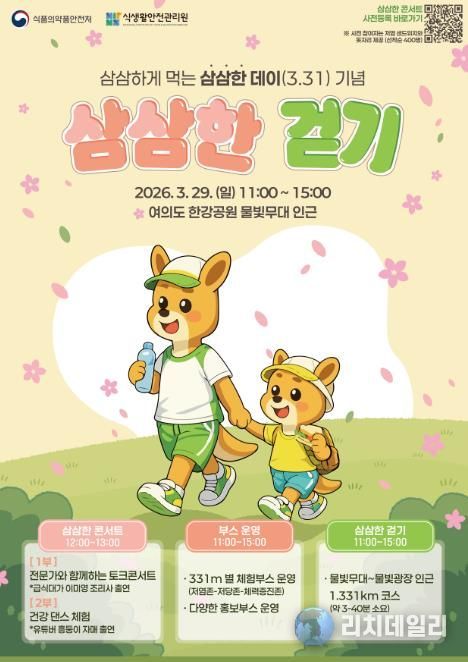 리치데일리 김상현 기자 | 식품의약품안전처는 식약처 삼삼한 데이(3월 31일)를 맞아 3월 29일 여의도 한강공원에서 건강한 식습관 확산을 위한 ‘삼삼한 걷기’ 행사를 개최했다.