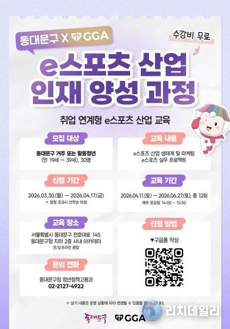 리치데일리 김상현 기자 | 서울 동대문구는 최신 경향에 맞춰 실무 중심의 e스포츠산업 교육을 통해 지역 청년의 취업 역량을 강화하고자 젠지이스포츠글로벌아카데미와 함께 ‘e스포츠산업 인재 양성 교육 프로그램’을 운영한다.