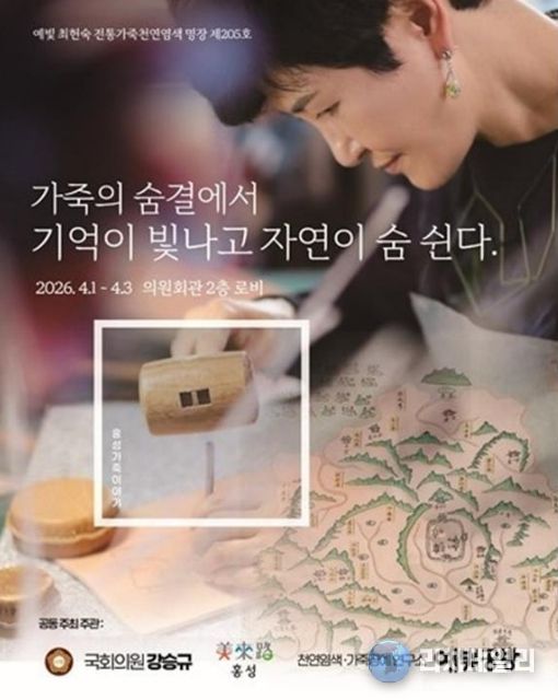 리치데일리 김상현 기자 | 홍성군은 오는 1일, 전통가죽천연염색 명장 예빛 최헌숙의 ‘가죽의 숨결에서 기억이 빛나고 자연이 숨 쉰다’가 서울 국회의원회관 2층 로비에서 개최된다고 밝혔다.