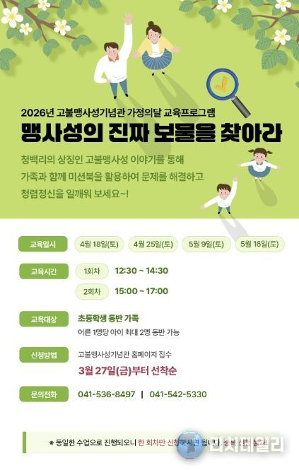 리치데일리 김상현 기자 | 아산시는 ‘2026 아산 방문의 해’에 가정의 달을 맞아 고불맹사성기념관에서 가족 교육 프로그램 ‘맹사성의 진짜 보물을 찾아라’를 운영한다.