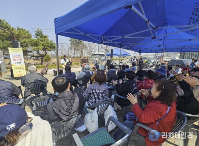 따스한 햇살 아래 펼쳐진 버스킹 공연은 오후1시부터 2시 30분까지 이어졌다. 4명의 공연자가 참여해 통기타 연주와 노래로 봄의 감성을 전했다. 겨울 끝자락을 지나 봄을 맞이하는 시간 속에서, 주민들은 음악과 함께 계절의 변화를 만끽했다.