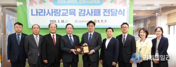 리치데일리 김상현 기자 | 인천광역시교육청은 지난 30일, 그동안 추진해 온 ‘역사 바로 알기’ 교육 정책과 독립운동 정신 계승을 위한 다양한 교육활동의 성과를 인정받아 광복회로부터 감사패를 받았다.
