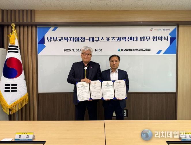 리치데일리 김상현 기자 | 대구남부교육지원청은 지난 3월 30일 오후 2시, 남부교육지원청에서 대구스포츠과학센터와 업무 협약을 체결했다.