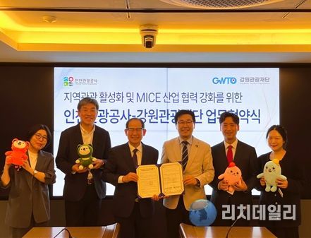리치데일리 김상현 기자 | 강원관광재단이 수도권 관문 도시 인천과 협력하며 관광 및 MICE 산업 경쟁력 강화에 나섰다. 재단은 지난 3월 30일 인천관광공사와 지역관광 및 MICE 산업 활성화를 위한 업무협약을 체결했다고 밝혔다.