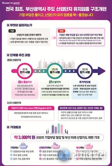 시는 산업단지 관리권자인 부산광역시장이 직접 구조 개편을 주도해 부산 전역 기업의 다양한 입지 수요에 유연하게 대응하고, 신산업이 역동적으로 성장할 수 있는 기반을 마련할 계획이다.