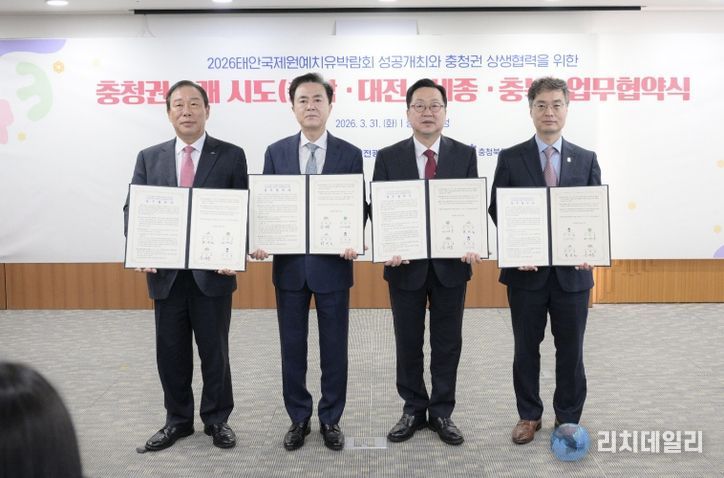 세종특별자치시는 31일 충남도청에서 대전시·충남도·충북도와 함께 ‘2026 태안국제원예치유박람회’의 성공적인 개최와 상생협력의 내용을 담은 업무협약을 체결했다.