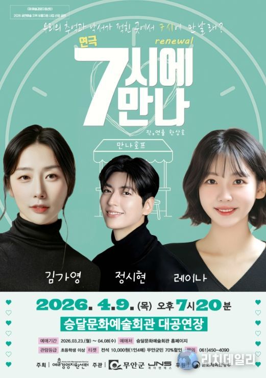 리치데일리 김상현 기자 | 전남 무안군은 문화체육관광부가 주최하고 예술경영지원센터가 주관하는 ‘2026년 공연예술 지역 유통지원 사업’ 선정작 연극 ‘7시에 만나’를 오는 4월 9일 오후 7시 20분 승달문화예술회관 대공연장에서 개최한다고 밝혔다.