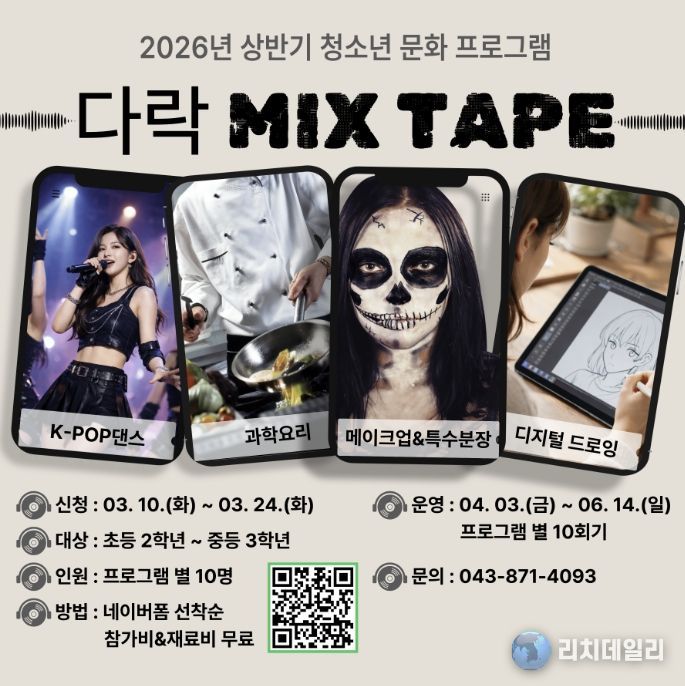 리치데일리 김상현 기자 | 음성청소년센터가 관내 청소년들의 뜨거운 관심 속에 2026년 상반기 청소년 문화 프로그램 ‘다락MIXTAPE’의 운영 준비를 마치고 4월부터 본격적인 일정에 들어간다.