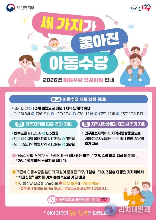 특히 올해는 법 개정에 따라 9세 미만 아동을 대상으로 1월분부터 소급 적용해 4월에 일괄 지급할 예정이다.
