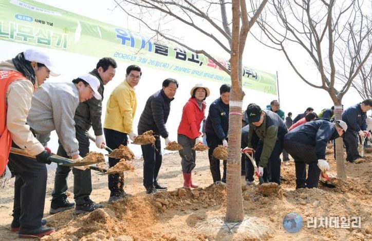 행사는 식전 공연을 시작으로 기념식과 기념 식수, 그룹별 식재 순으로 이뤄졌으며, 특히 산불 피해지 복구의 의지를 다지기 위해 내빈들과 어린이들이 함께한 ‘희망나무 증정 퍼포먼스’로 미래 세대에게 물려줄 푸른 숲의 가치를 다시 한번 강조해 눈길을 끌었다.