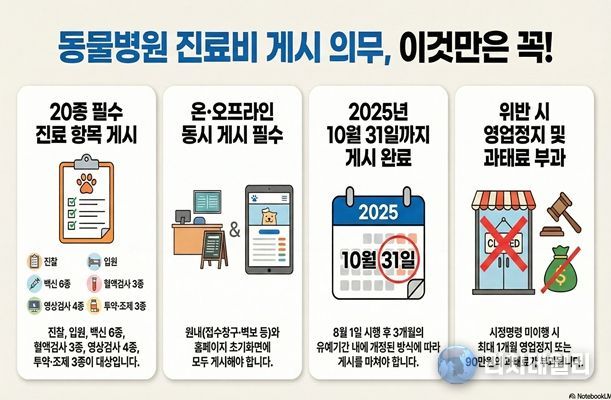 이번 점검은 2025년 8월 시행된 동물병원 진료비 게시제도의 적정 이행 여부와 전반적인 운영 실태를 확인하기 위해 추진된다.