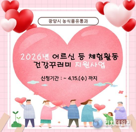 리치데일리 김상현 기자 | 광양시가 어르신·장애인·아동 등 실외 활동이 어려운 이용자를 대상으로 ‘체험활동 건강꾸러미 지원사업’을 추진하고, 4월 15일까지 신청을 받는다.