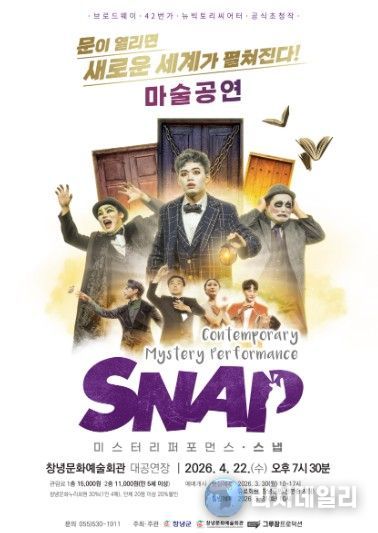 리치데일리 김상현 기자 | 창녕군은 오는 4월 22일 오후 7시 30분, 창녕문화예술회관 대공연장에서 세계적인 화제작 매직 퍼포먼스 ‘스냅(SNAP)’을 개최한다고 밝혔다.