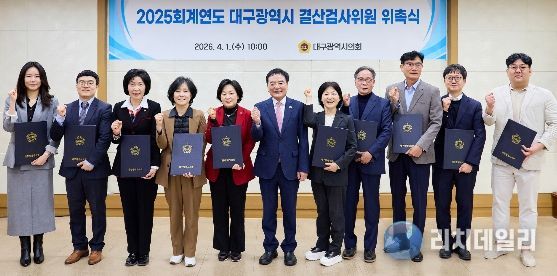 리치데일리 김상현 기자 | 대구광역시의회는 4월 1일, 2025회계연도 결산검사위원 10명을 위촉하고 본격적인 결산검사에 착수했다.