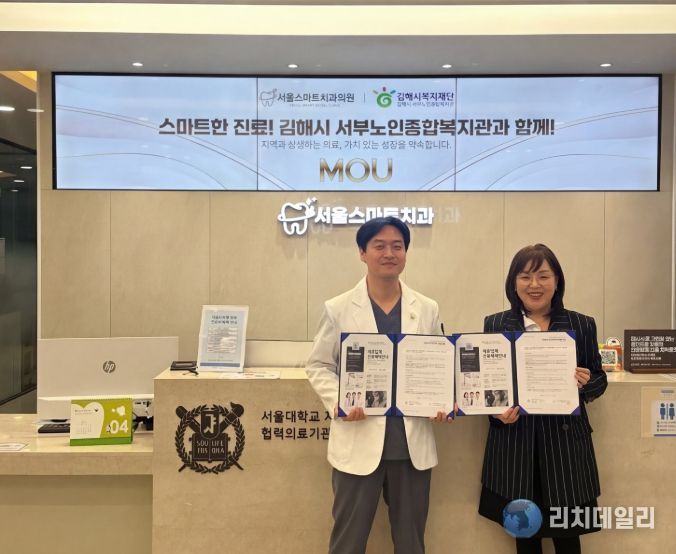 리치데일리 김상현 기자 | (재)김해시복지재단 김해시서부노인종합복지관은 지난 31일 13시 서울스마트치과의원(원장 배정훈)과 예방, 진료, 교육 등 통합적인 구강보건 서비스 제공을 위해 업무협약을 체결했다.
