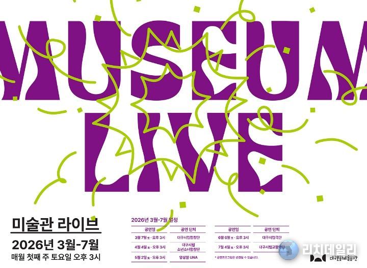 김희철 대구문화예술회관장은 “44년 역사를 가진 대구시립소년소녀합창단의 맑고 청아한 목소리가 주말 오후 미술관을 가득 채울 것”이라며 “전시와 공연이 함께하는 미술관 라이브를 통해 시민들께 문화예술을 더 가까이서 경험하는 시간이 되길 바란다”고 말했다.