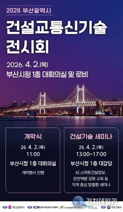 리치데일리 김상현 기자 | 부산시는 우수 건설 신기술 홍보와 활용을 촉진하고 지역 중소기업의 성장동력을 지원하기 위해 오늘(2일) 오전 10시부터 오후 5시까지 시청 1층 대회의실과 로비에서 '2026년 부산광역시 건설교통신기술 전시회'를 개최한다고 밝혔다.