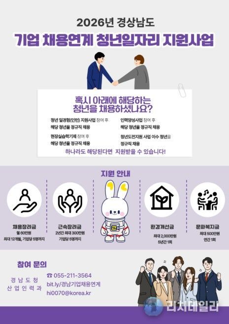 리치데일리 김상현 기자 | 경상남도는 기업과 대학 간 협약을 통해 구인·구직간 미스매치를 해소하기 위해 준계약학과 방식으로 ‘기업 채용연계 청년일자리 지원사업’을 추진하고 있다고 밝혔다.